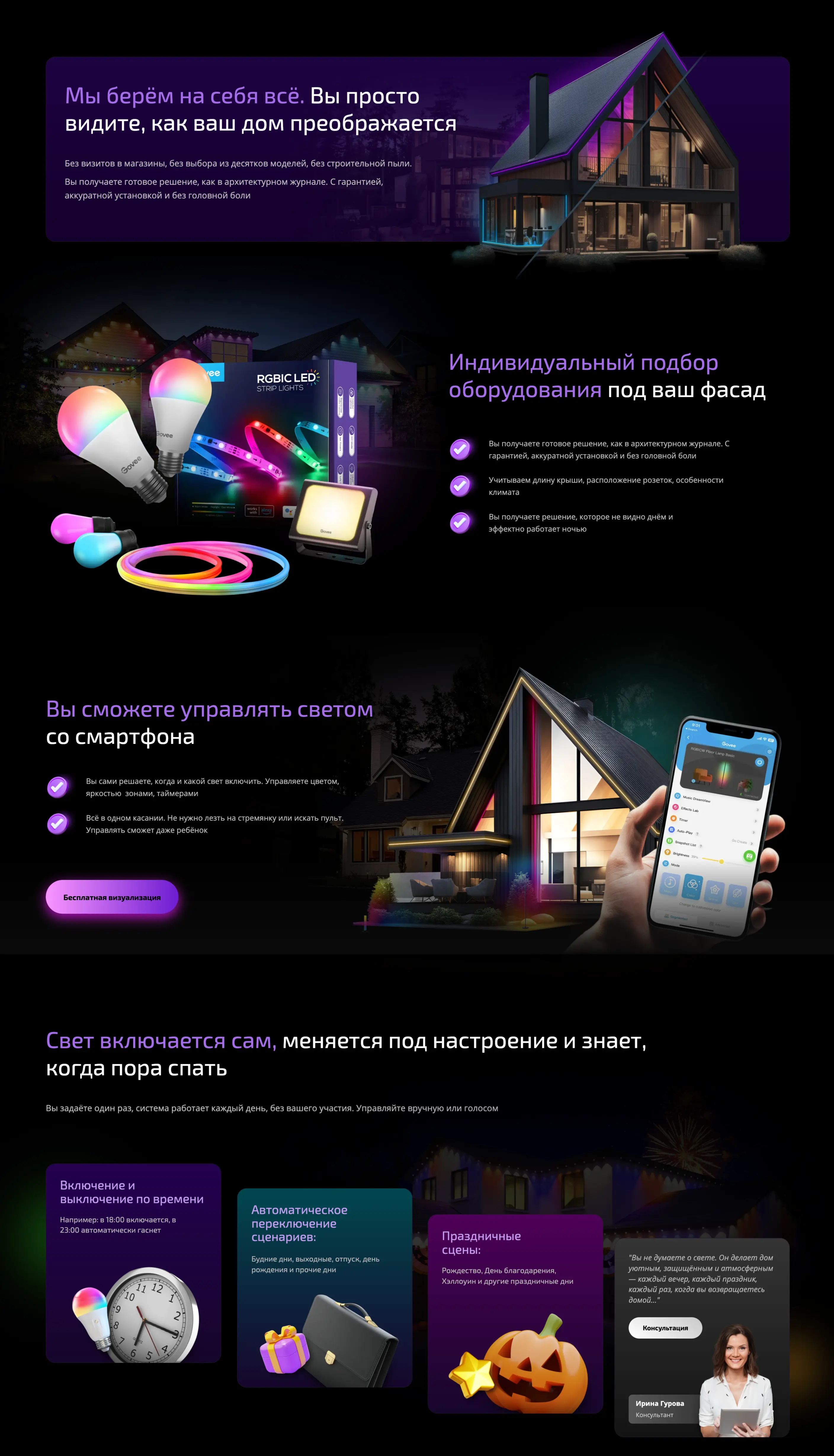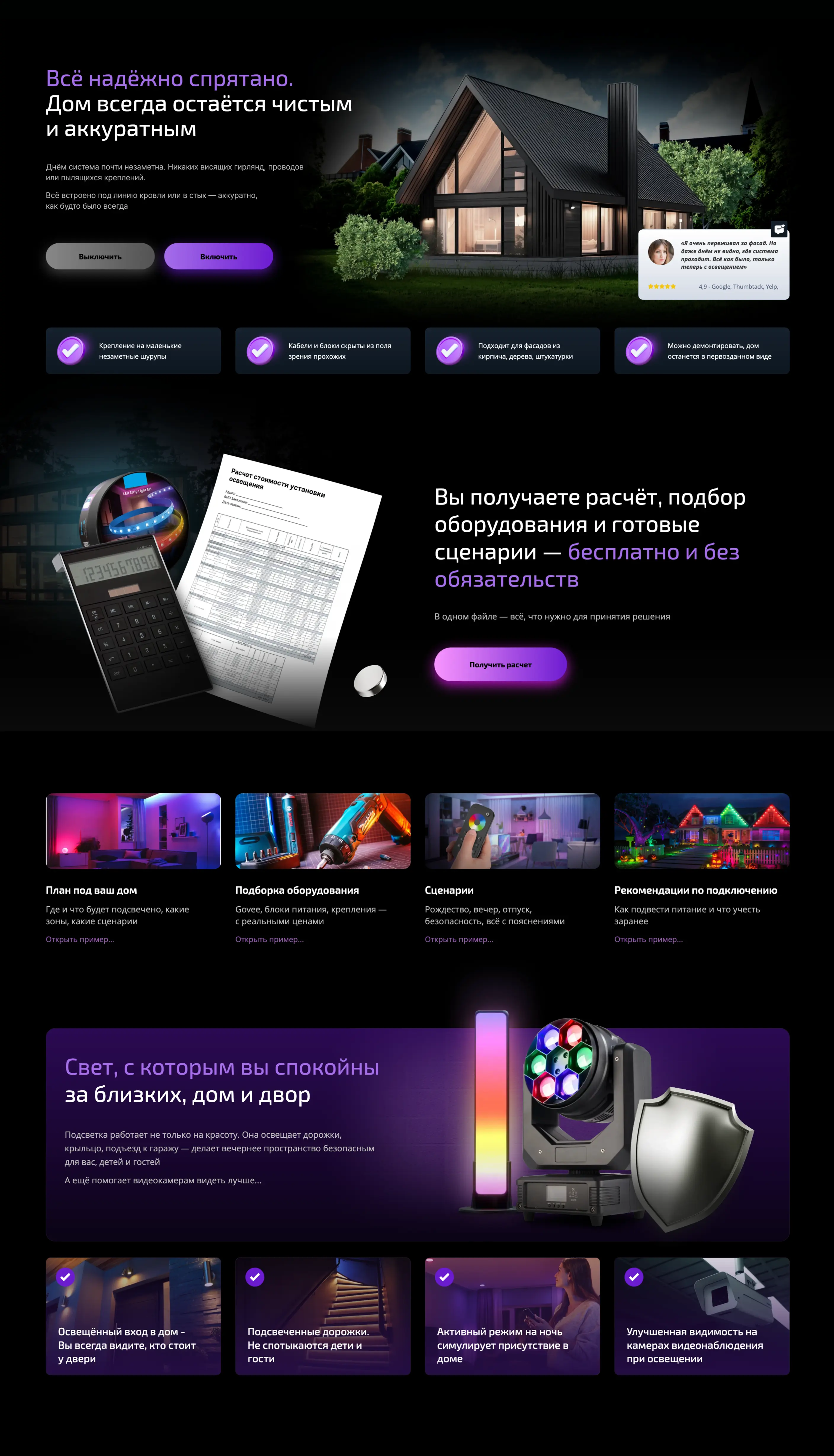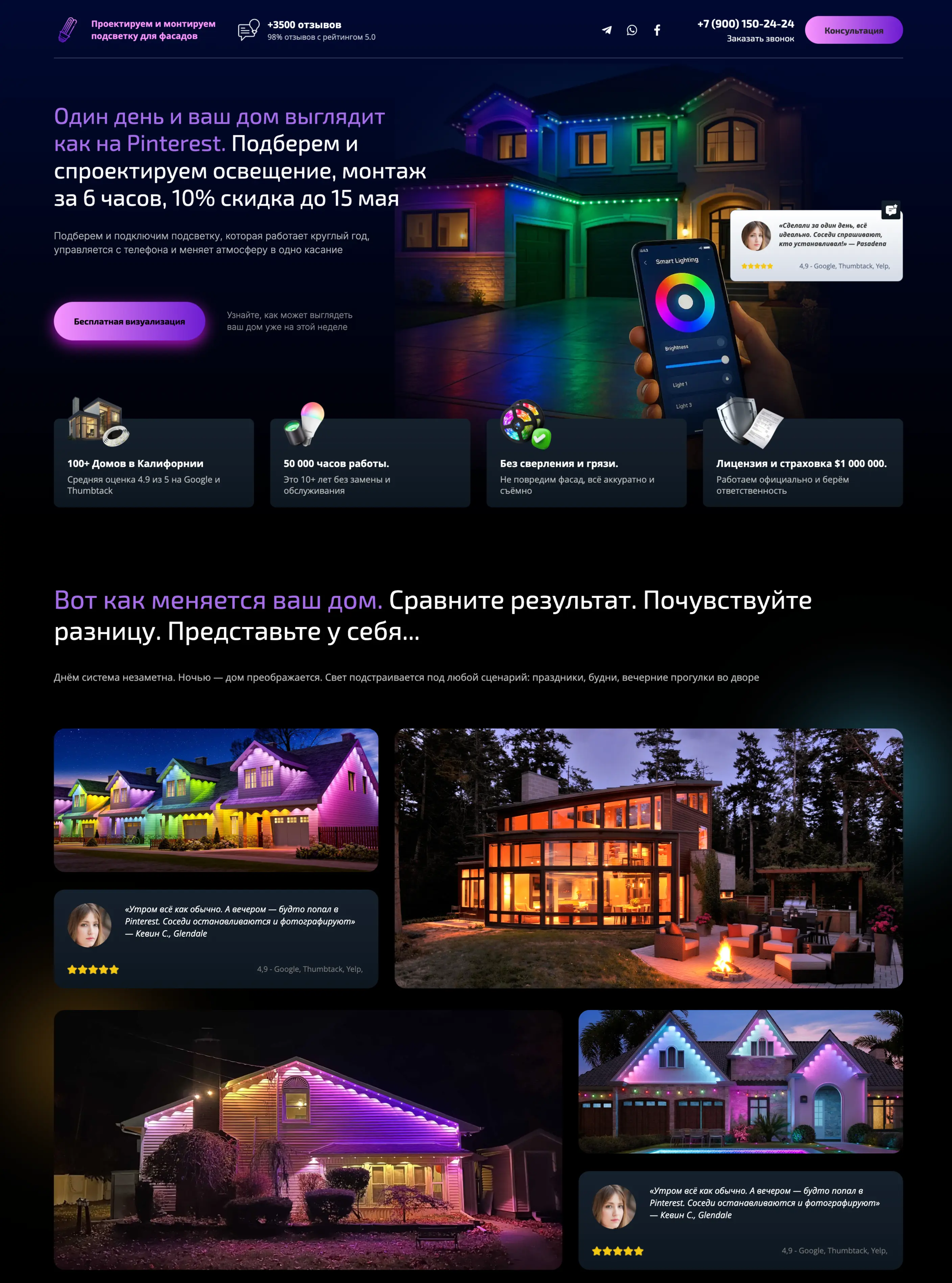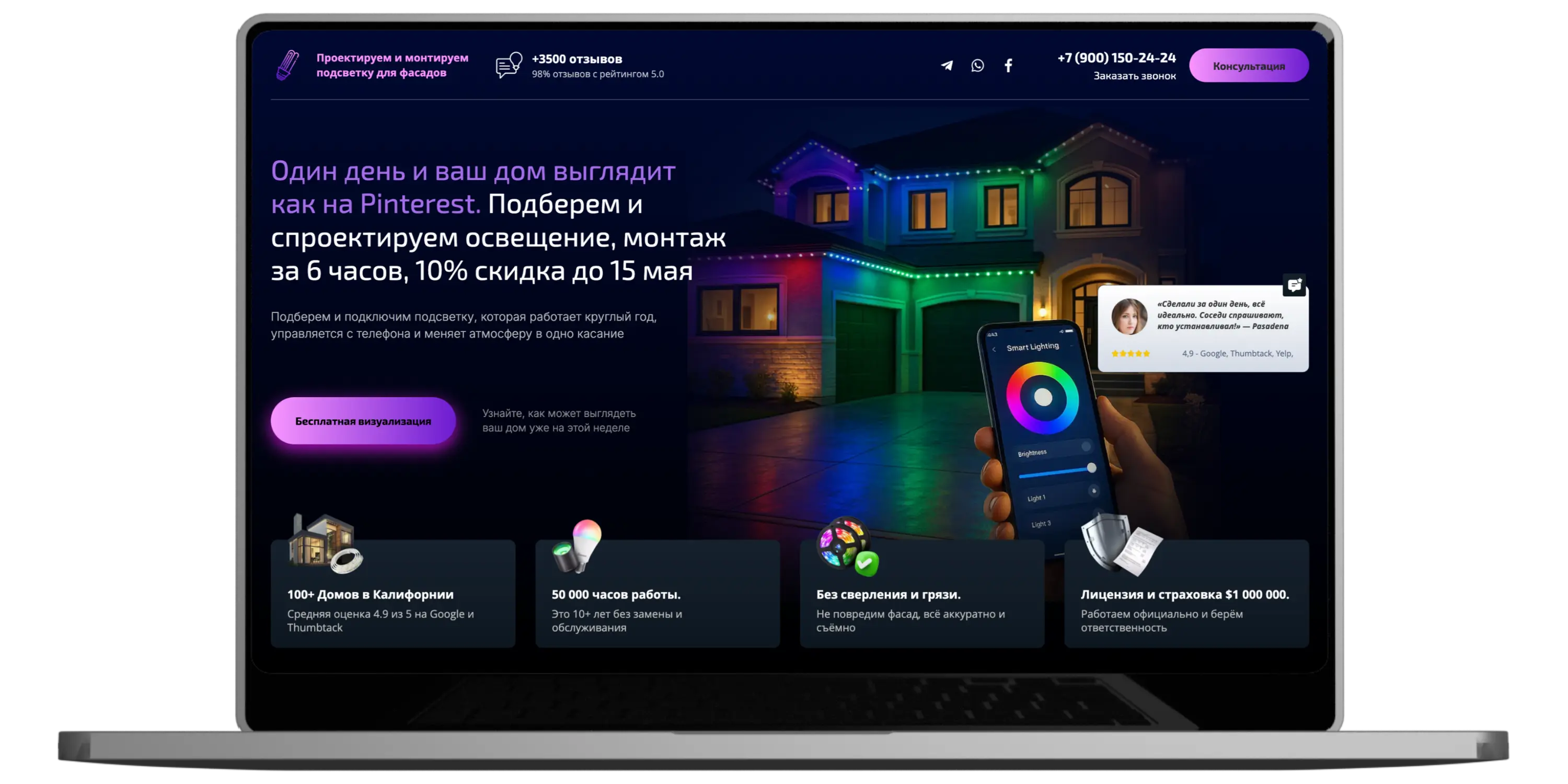 Студия LP-PROF разработала продающий лендинг для компании, занимающейся установкой фасадного освещения частных домов. Основной задачей проекта было создание современного сайта, который будет не только визуально выделяться среди конкурентов, но и эффективно привлекать заявки от потенциальных клиентов.